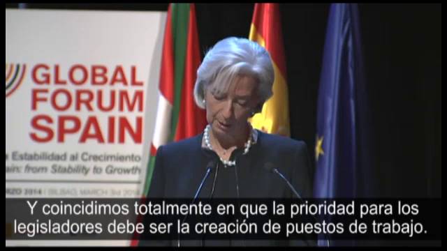 A preguntas del secretario de Estado de Economía, Fernando Jiménez Latorre, Lagarde ha señalado que la mejor prueba de que España está retomando el creicmiento es el interés de los inversores por el país. pero el reto, ha subrayado, es que las inversiones se traduzcan en empleo.